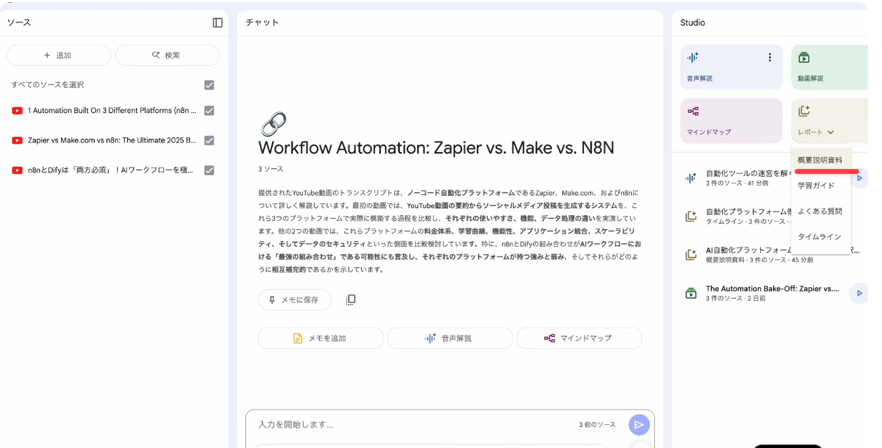 GenSparkの最大の強みは、単なる情報羅列ではなく、複数の情報源から本質的なポイントを抽出し、比較分析や論理的な結論を導き出す能力にあります。これにより、複雑なテーマであっても、簡潔かつ説得力のあるプレゼンテーション資料を効率的に作成できます。