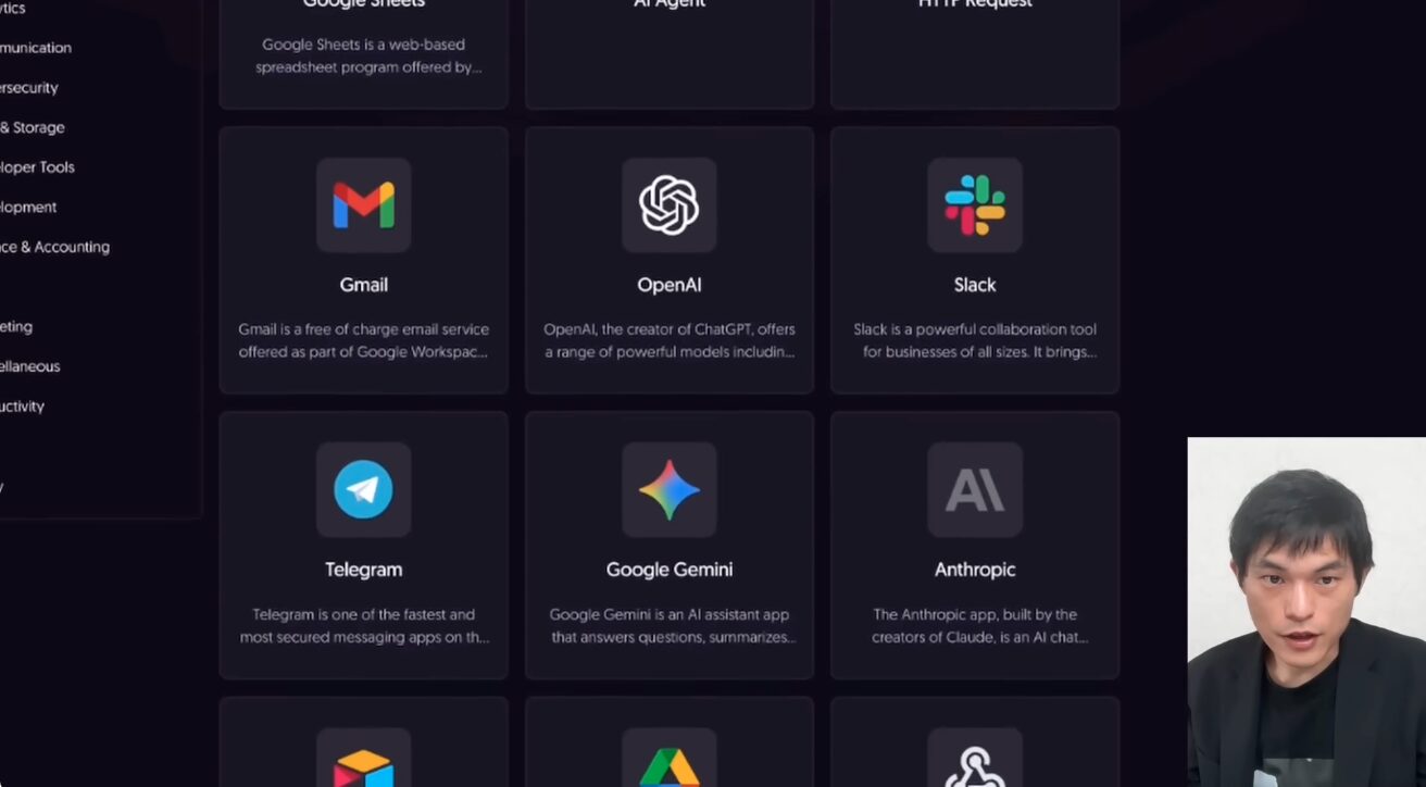 例えば、AIエージェントに特定の情報収集や分析を指示し、その結果に基づいて自動で次のアクションを決定させることも可能です。コンテンツの企画立案、市場調査のレポート作成、顧客対応の自動化など、その応用範囲は無限大です。非エンジニアでも直感的なインターフェースを通じて、まるでブロックを組み立てるように、自分だけのAI搭載ワークフローを構築できるのがn8nの最大の魅力と言えるでしょう。