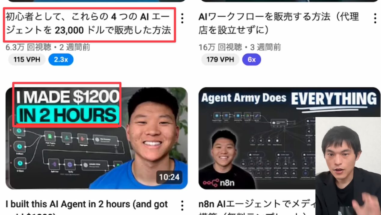 例えば、海外のn8nスクール運営者は、初心者でも構築できる4つのAIエージェントワークフローを2万3000ドル(日本円で約330万円)で販売した実績があります。また、別の事例では、2時間の作業で1200ドル(約17万円)を稼いだという報告もあり、n8nのスキルが直接的な収益につながることを示しています。これは、企業が時間とコストをかけて自社でシステム開発を行うよりも、効率的な自動化ソリューションを外部から購入するニーズが高まっていることを意味します。