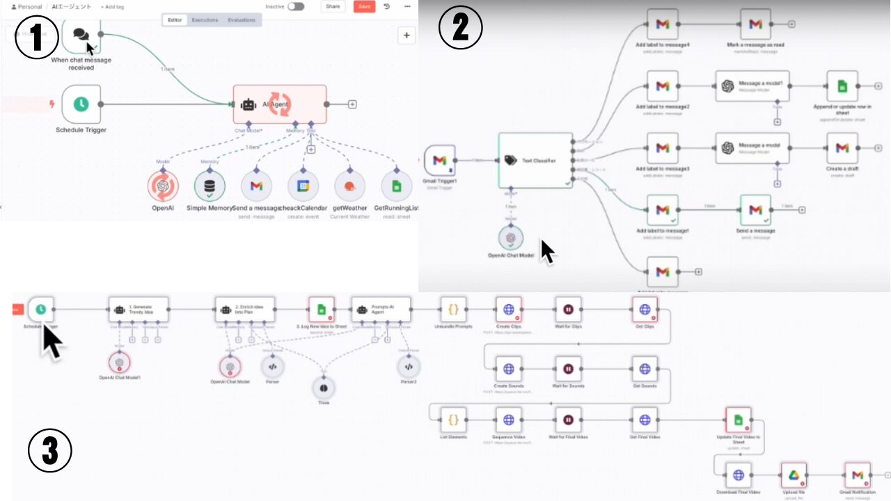 - ③ショート動画自動生成システム: 定期的にショート動画を自動生成するワークフローも構築されています。これは、コンテンツクリエイターが継続的に新しいコンテンツを提供するための強力な支援ツールとなります。