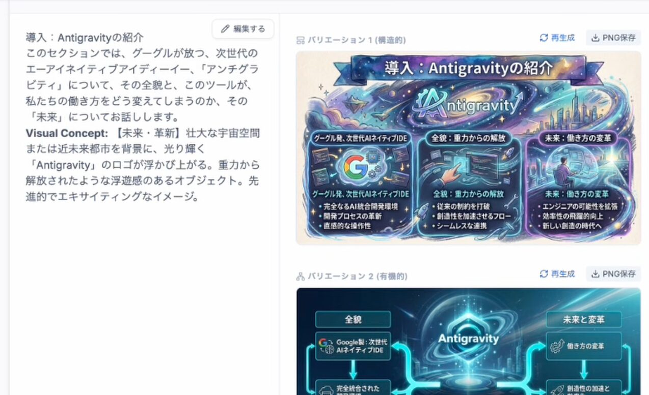 - Antigravityによるスライド構成の生成: