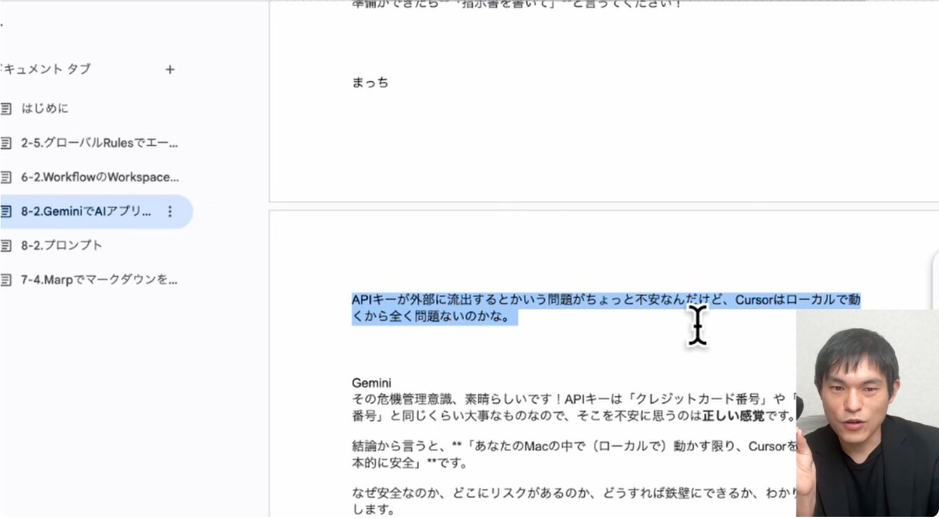 これらのArtifactsを確認しながら、AIエージェントとの対話を進めます。もし途中で不安な点や不明な箇所があれば、Artifacts上の「comment on this line」機能を使って質問したり、スクリーンショットを撮ってChatGPTに投げたりすることで、解決策を得られます。例えば、AIが「Accept」と表示して許可を求めている場合、それは「Terminal commandを実行しても良いか?」という確認であることを理解しておくことが重要です。