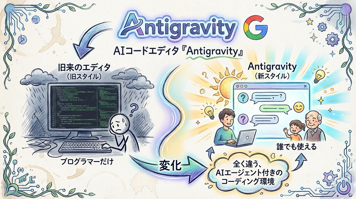 日々の業務で、思考を要さない繰り返し作業に多くの時間を費やしていませんか?AIの進化が目覚ましい現代において、誰もがその恩恵を受けたいと願いながらも、「プログラミングは難しい」「複雑なシステムは扱えない」と二の足を踏んでいる方も少なくないでしょう。本記事では、Googleが提供する革新的なAIコードエディター「Antigravity」を活用し、専門知識がなくてもAIアプリケーションを構築し、煩雑なタスクから解放される具体的な道筋をご紹介します。もう深夜までパソコンにかじりつく必要はありません。Antigravityがあなたのワークフローを劇的に変える可能性を秘めています。