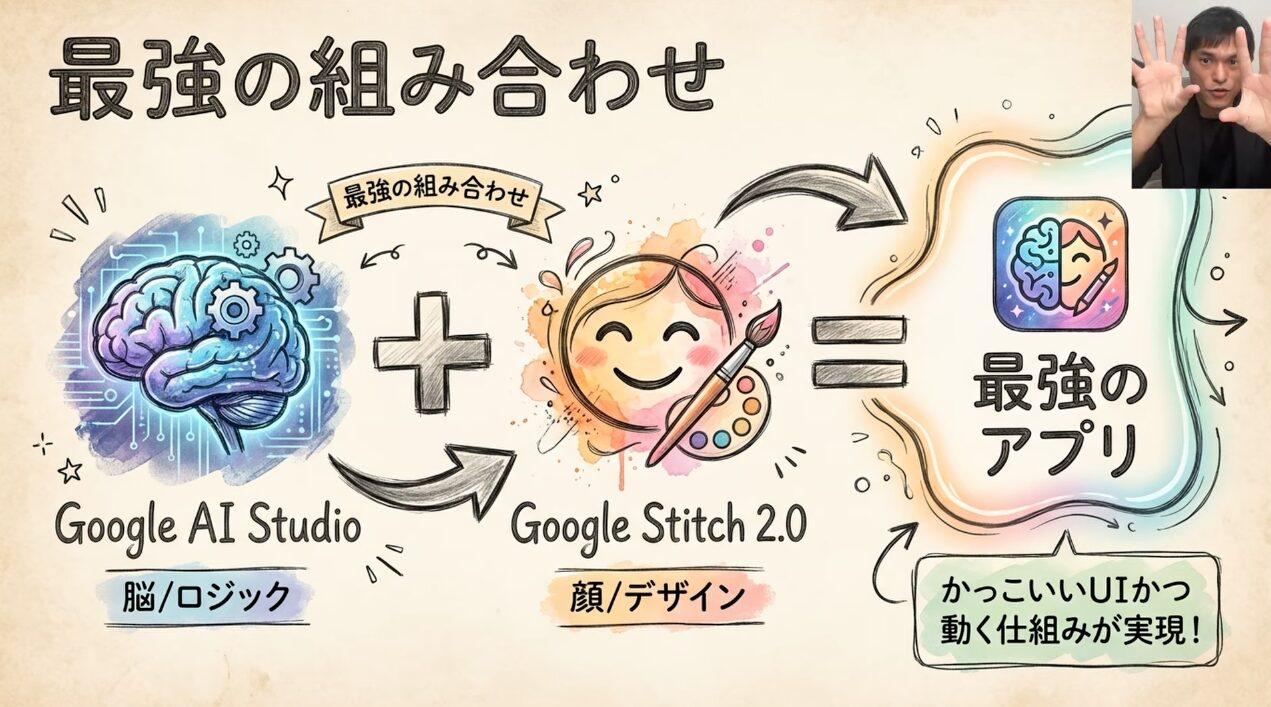 Google AI StudioでAIの頭脳と機能を開発し、Stitchでユーザーが直接触れる部分、つまりアプリの「顔」となるUIをデザインする。この二つのツールを組み合わせることで、機能性とデザイン性を兼ね備えた、プロフェッショナルなAIアプリケーションを、プログラミング知識がない人でも開発できる可能性が広がります。
