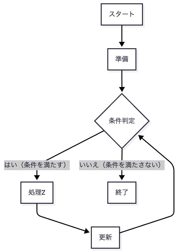 繰り返し処理は、同じ一連の処理を、決められた回数、または特定の条件が満たされるまで、何度も自動で実行する処理の流れです。